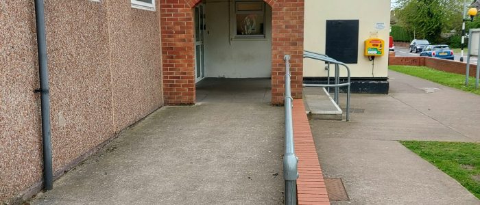 - Front Entrance: A dedicated ramp provides easy wheelchair and power-scooter access to the main entrance.